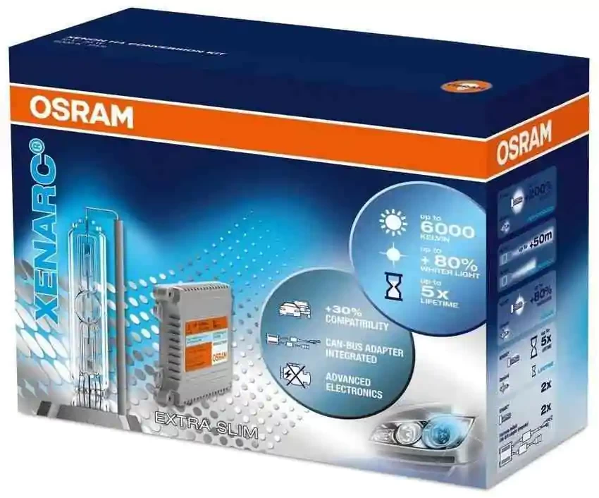 -طقم زينون أوسرام يعد أحدث تطوير في إضاءة الطرق السريعة خارج الطرق العامة الداخلية . محققا ضعف إضاءة اللمبات الهالوجين ورؤية أكثر وضوحا بفارق ملحوظ من خلال ضوء أقوى ومدى رؤية أوسع مما يقلل الإجهاد على عيني قائد السيارة. بمراعاة عوامل الأداء الطويل العمر ودقة حساب كمية الحرارة المنبعثة ومقاومة الاهتزاز والمياه يعد جهاز زينون أوسرام جهاز صنع ليبقى طويلا وفعالا. فعمر الجهاز أطول من