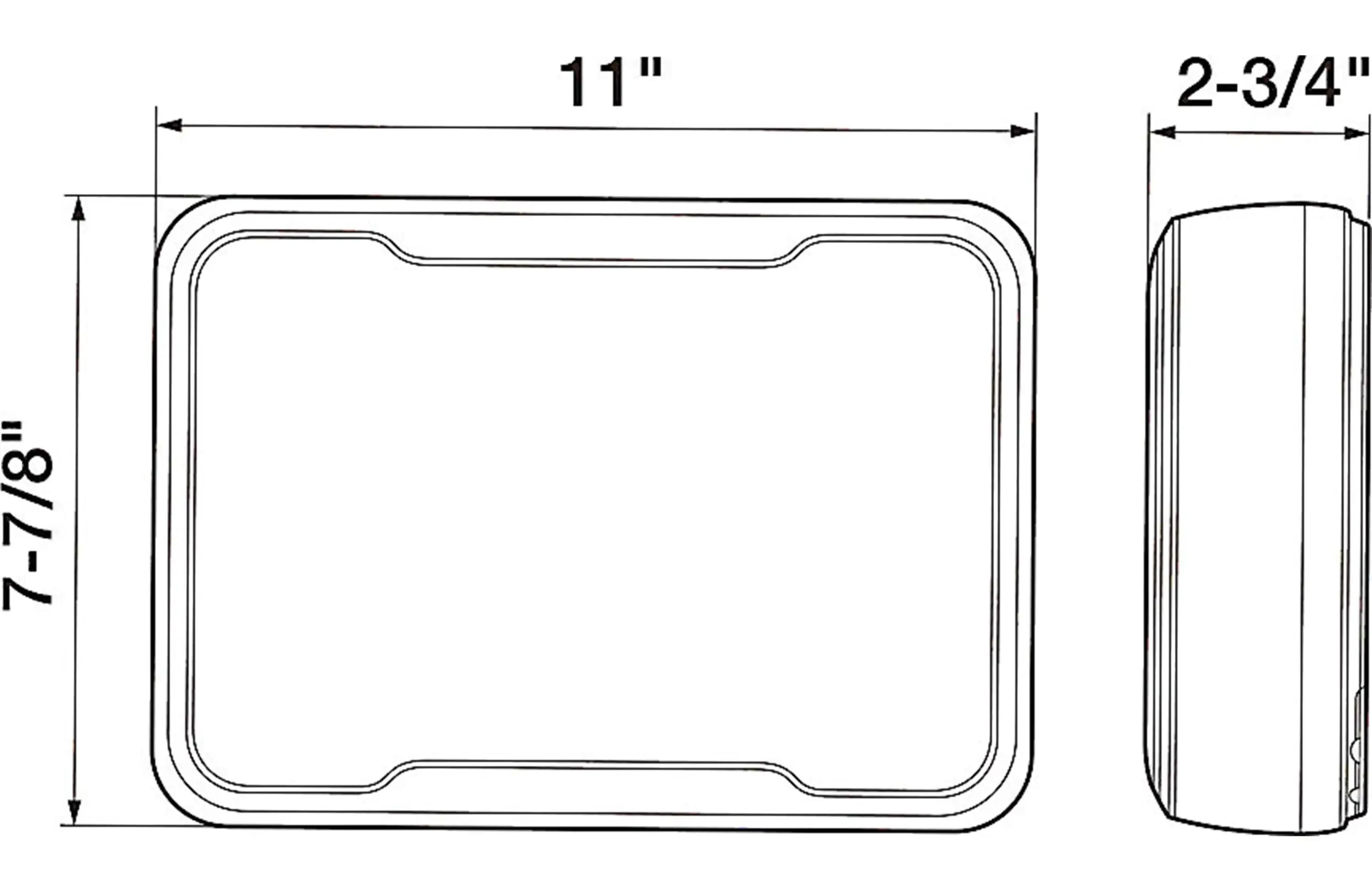 حجم الجهاز 11 انش × 7-7/8 بوصه مع ارتفاع 3 بوصة وتم التصميم ليتم التثبيت في اي مكان بالسيارة