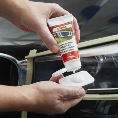Set for a cost effective manual restoration of age related yellowed and Matt plastic headlights. In 2 easy steps yellowing, dullness and fine scratches are removed, prior to the long term sealing of the treated surfaces, which are then durably protected against renewed bleaching out. The application restores the headlight’s original clarity. Besides the beautiful appearance of the headlights and a value enhancement for the entire vehicle, the improved luminous efficiency ensures greater driving safety through the ability to see and be seen. For 2 applications on 2 headlights.